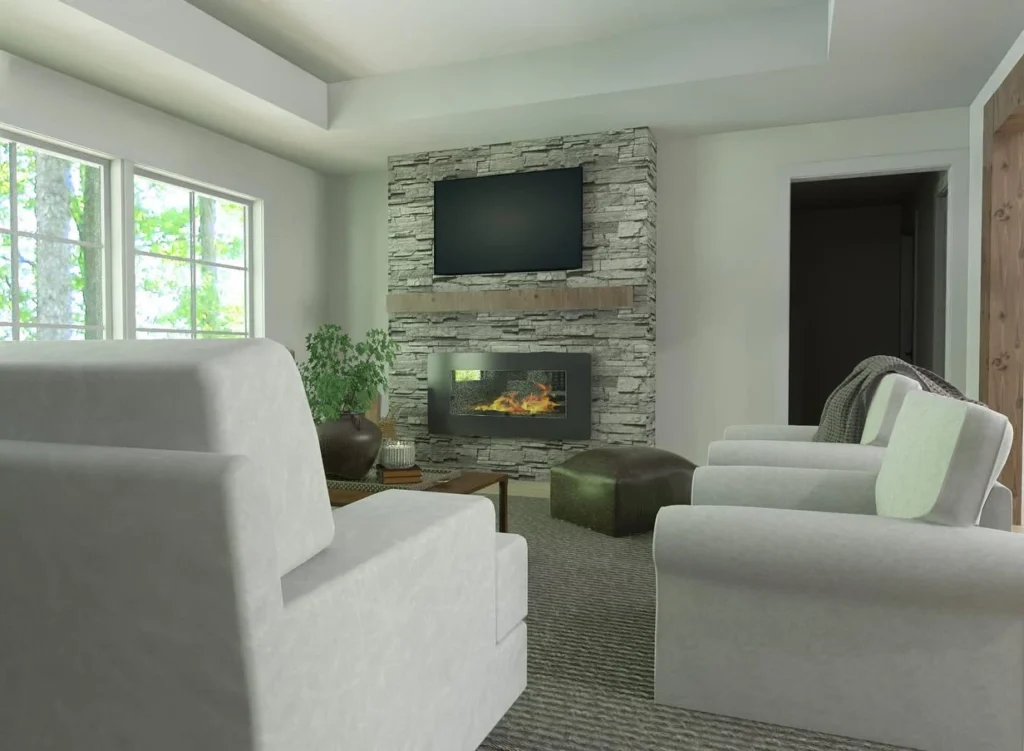 Take a look at the stunning renderings below! From the cozy living room with its inviting fireplace and modern open-concept design to the serene bedroom bathed in natural light, every detail is crafted to inspire. The sleek, modern bathroom and the functional yet stylish mudroom showcase how we blend beauty with practicality. These renderings aren’t just images—they’re a promise of the home you’ve always imagined.