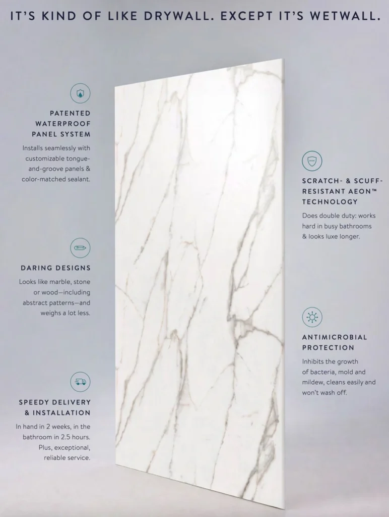 Best of all, Wolf and Wetwall panels offer incredible durability and value. They cost less than traditional tile installations and are built to withstand daily use without losing their polished look. Whether you’re remodeling your bathroom or starting fresh with new construction, Crockett Construction can help you achieve a high-end design that’s both low-maintenance and long-lasting.