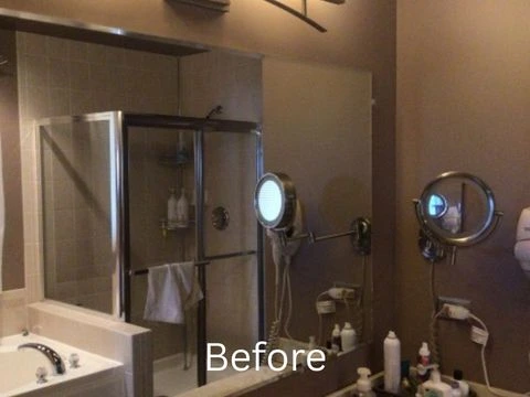 At Crockett Construction, we recently transformed a dated Tinley Park, IL bathroom into a serene, modern oasis, breathing new life into a space that had long outgrown its original charm. The original setup featured a cramped shower-tub combo enclosed by a bulky framed door, an underutilized jacuzzi tub, and a double vanity with outdated oak cabinets and beige tiling that absorbed light, making the room feel dim and confined. Our clients envisioned a brighter, more functional retreat, and that’s where our interior design services shine—collaborating closely to blend their personal ideas with our professional expertise. By incorporating timeless trends, we ensured the renovation would stand the test of time, moving away from the dark, enclosed feel to an open, inviting layout that maximizes natural light and space.