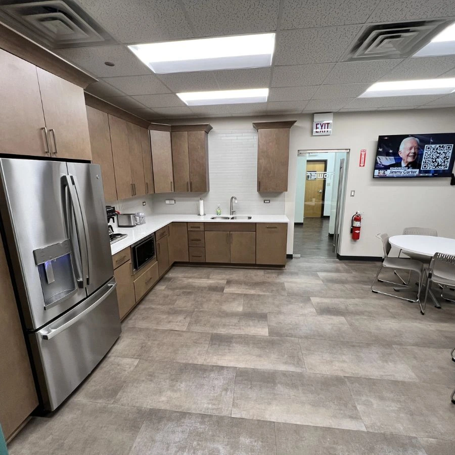 - Modern Breakroom: To enhance employee satisfaction and comfort, we designed a new modern breakroom featuring sleek finishes and practical amenities.