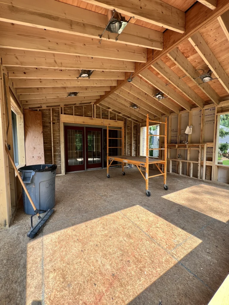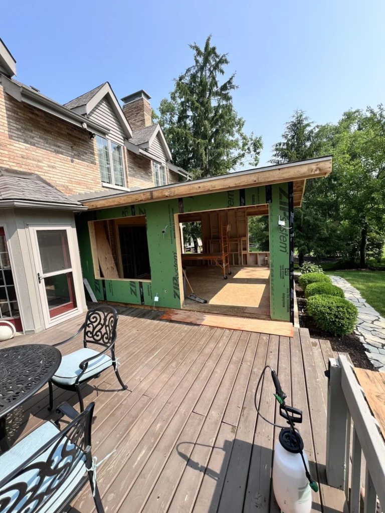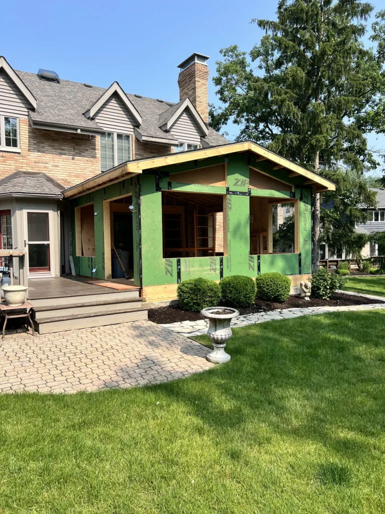 Next came the planning and design phase, where our skilled designers crafted blueprints that blend functionality with beauty. We carefully considered the layout, materials, and structural details to create a sunroom that maximizes natural light and complements the brick and wood exterior of this charming Frankfort home. With approvals in place, we’re now excited to announce that construction has officially begun!